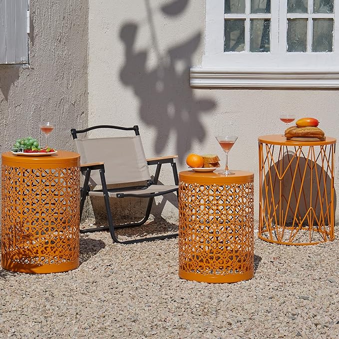 Y&M Set of 3 Stacking Coffee Table for Living Room, Patio Side Table, Indoor End Tables for Bedroom, Outdoor Decorative Garden Stool with Heavy Duty Metal Frame Modern Industrial Decor - Orange