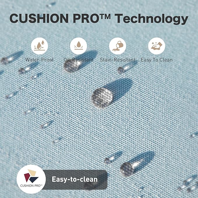 - 【ADVANCED CUSHION TECH】Experience the happiness of easy maintenance with the SUNSHINE VALLEY patio conversation set. The fabric of this patio furniture set is made with patent CUSHION PRO technology. It has excellent waterproof, oil-proof, and stain-resistant properties making the dirt easily wiped down. It can really meet your outdoor leisure needs