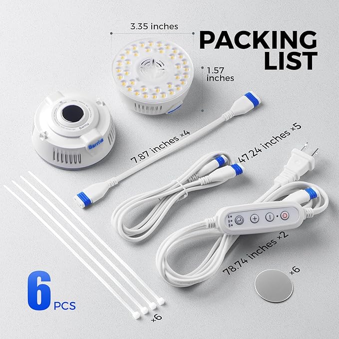 Barrina Orbgrow OG09 Puck Grow Light, 5000K 54W(6 x 9W, 810 Watt Equiv), Full Spectrum Plant Light for Indoor Plants, Magnetic & Linkable with Timer, 5 Levels Dimmable for Plant Shelf, 6 Packs