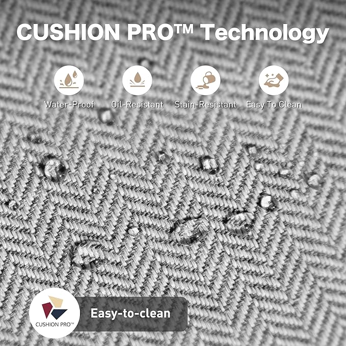 - 【ADVANCED CUSHION TECH】Experience the happiness of easy maintenance with the SUNSHINE VALLEY patio conversation set. The fabric of this patio furniture set is made with patent CUSHION PRO technology. It has excellent waterproof, oil-proof, and stain-resistant properties making the dirt easily wiped down. It can really meet your outdoor leisure needs