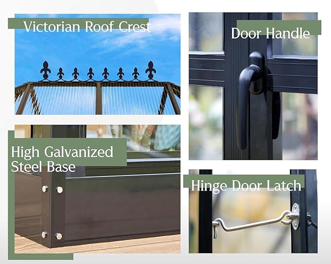 - 【Quick Connect System】Three skilled enthusiasts can assemble this greenhouse kit in just 5 hours. Introducing patented technology, revolutionizing greenhouse connectivity to save you 50% time. Gone are the days of tedious setups. With a simple push and locking screw, our Quick Connect ensures a reliable, secure, and swift link-up.