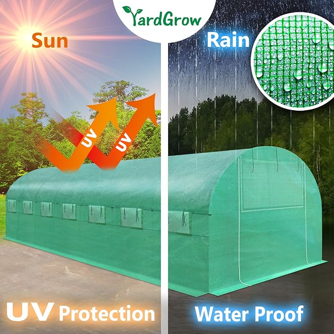 YardGrow Greenhouse Replacement Cover Larger Walk in Outdoor Plant Gardening Greenhouse, 2-Doors with 2 Mesh Windows, Frame Does NOT Included (25'x10'x6.6')