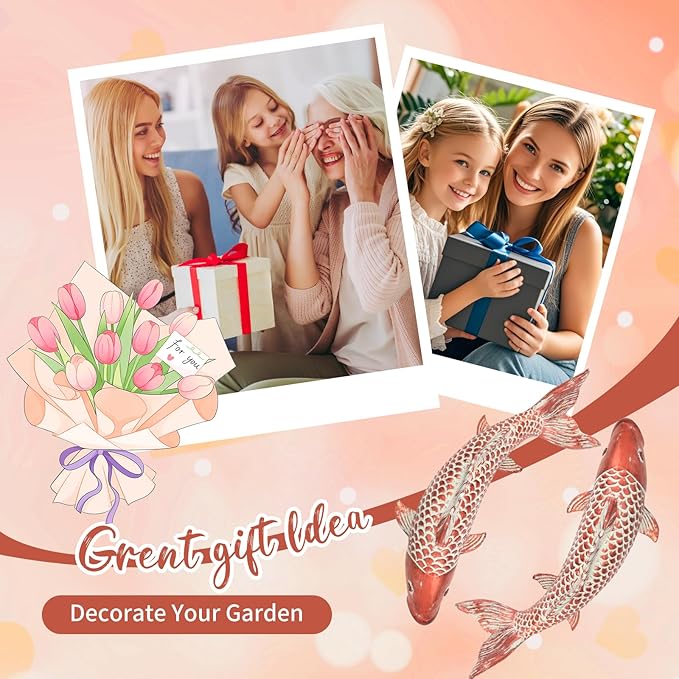 - The koi fish sculpture is made of resin, Waterproof paint, not afraid of the wind, sun and rain, and can be used outdoors for a long time. Decorate them in gardens, front or backyards, flower beds, lawns, farms, patios, along the road.