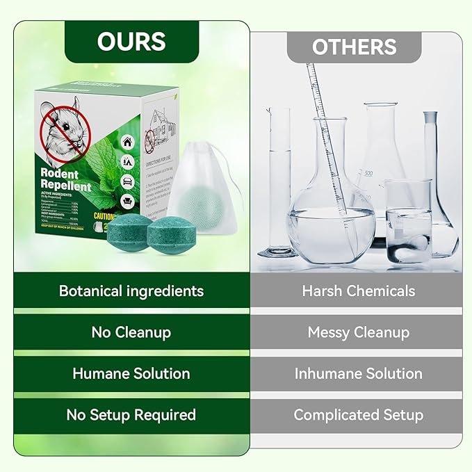 - Natural Rodent Repellent: Repel rodents without causing harm, the rat repellent works by emitting multiple strong minty scents to run away