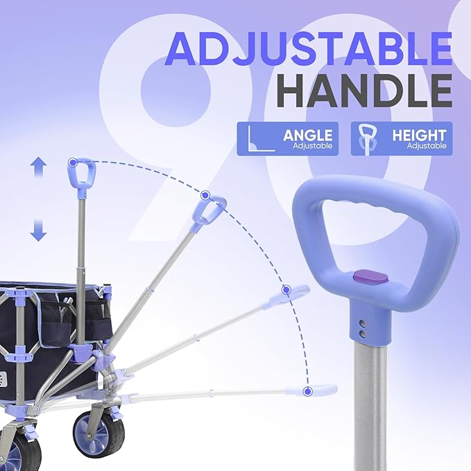 Collapsible Wagon Cart with 440lbs Weight Capacity, Heavy Duty Foldable Wagon with Big All-Terrain Wheels & Drink Holders, Utility Carts for Camping, Garden, Outdoor, Grocery, Sports. Blue