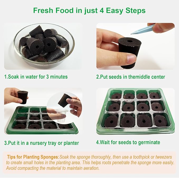 - 【 Easy to use and store 】Before use, soak thoroughly for 3-5 minutes and then add the seeds. The top adopts an open hole design, which does not require manual opening and is more convenient to use. Sponge growth is subjected to high-temperature drying treatment before leaving the factory, making it easy to store.