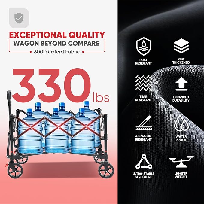 - ๐ง๐ผ๐๐ด๐ต ๐ฎ๐ป๐ฑ ๐ฅ๐ฒ๐น๐ถ๐ฎ๐ฏ๐น๐ฒ: Crafted with durable 600D fabric and a sturdy frame that supports up to 330 lbs, this cart is designed for heavy-duty use and long-lasting performance.