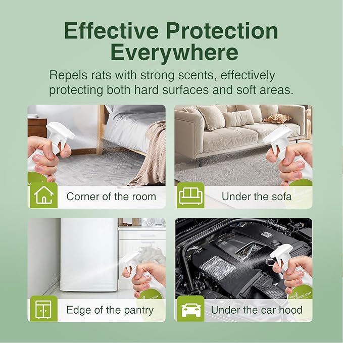 - INDOOR-OUTDOOR CRITICAL ZONE SAFETY:Apply worry-free in mouse-prone areas: kitchens (indoor), gardens (outdoor), car engines. Water-based formula vanishes without residue on surfaces or wires.
