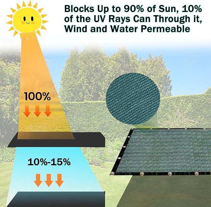 - Easy to Set Up: Our shade cloth is reinforced with double grommets on every corner and 1 grommet every 2 feet, ensuring extra strength. It can be hung easily and securely, providing convenient sunblock protection