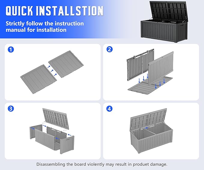 - 👍【Durable and Weather-Resistant 】This waterproof outdoor storage box is made of high-quality weather-resistant resin, designed to withstand rain, snow, and sun. Its sturdy construction prevents rust, peeling, and dents, making it an ideal solution for any outdoor area. The stable design ensures it stays secure without wobbling after assembly.