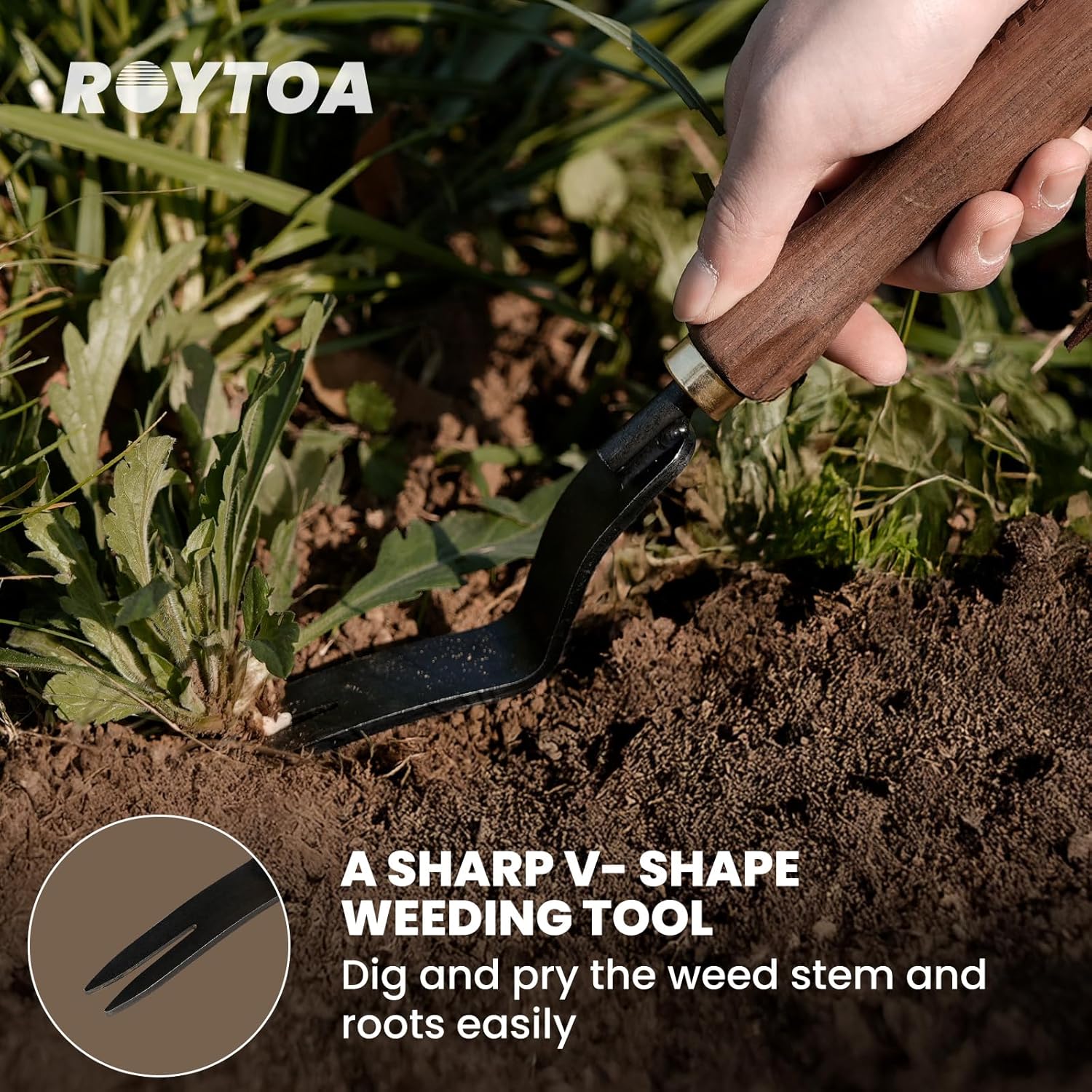 - 【Ergonomic Soft-Grip Handle】Non-slip and comfortable walnut handle is gentle on hands and improves control while reducing hand and wrist fatigue, which is a good helper for gardening and weeding.
