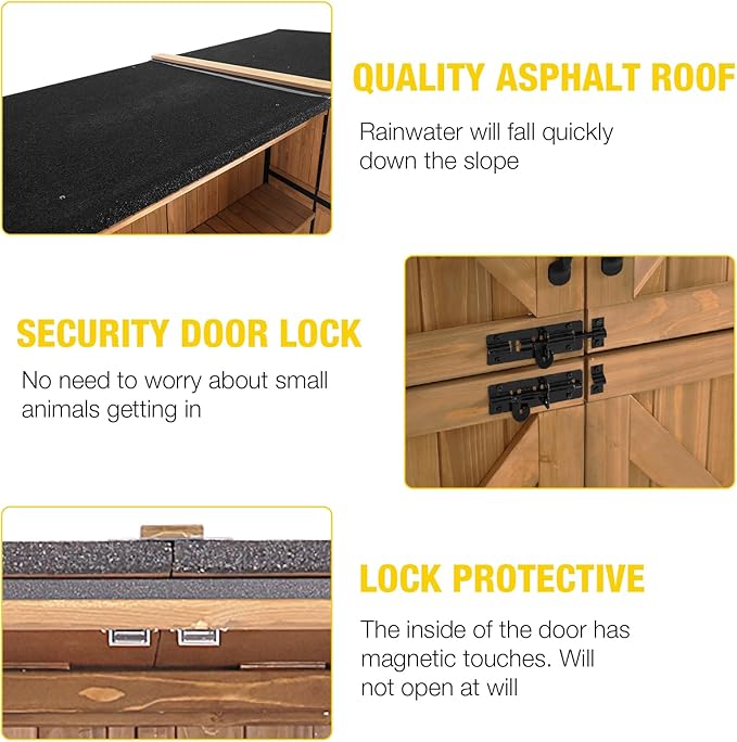 - Structural Stability: Our outdoor garden sheds are made with sturdy metal frame reinforcements and durable cedar lumber for unmatched stability and durability.