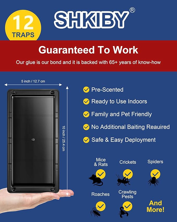 Rat & Mouse Glue-Traps 12 Pack, Large Bulk Traps, Indoor for Home, Pre-Scented Adhesive Plastic Tray Inside House, Snake, Mice, Spider Pet Safe