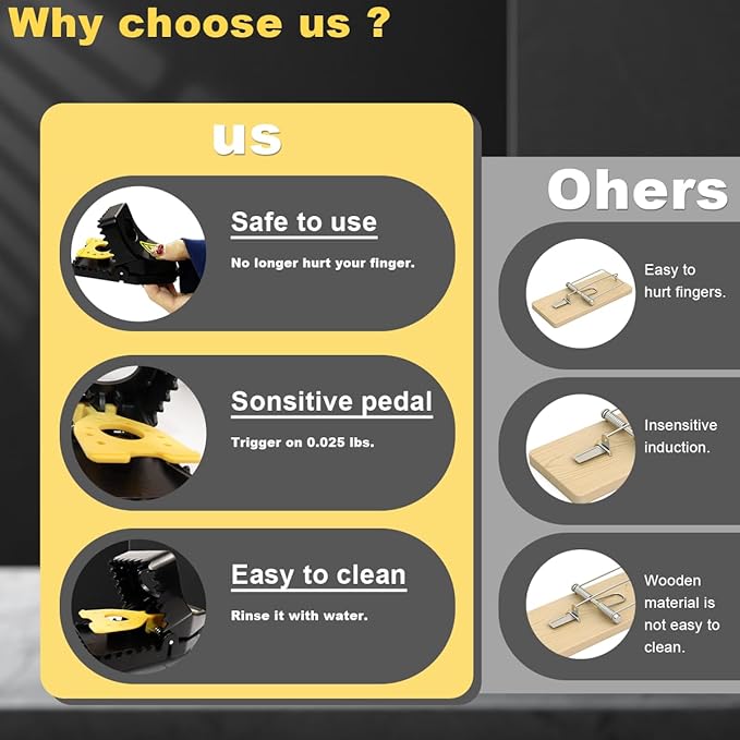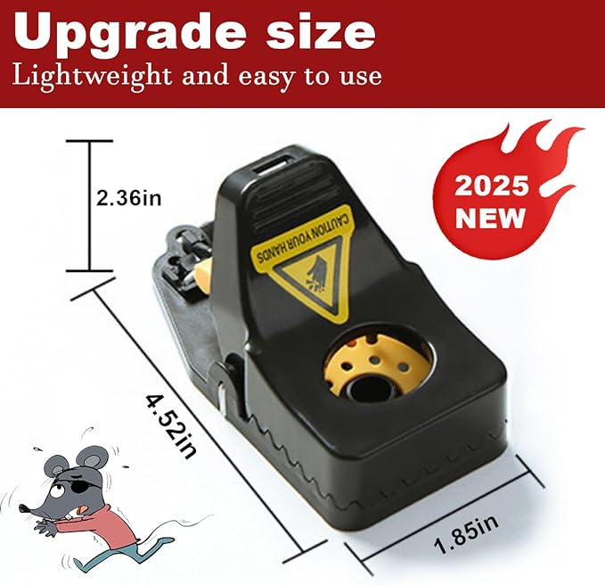 - 【Safe to Use】Enjoy touch-free handling, keeping your hands clean and the environment sanitary. You can safely place the bait without worrying about pinching your fingers. Say goodbye to ineffective pest control methods and protect your home from infestation. It is recommended to use a small amount of peanut butter as bait.