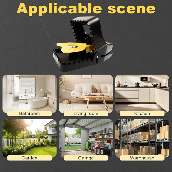 - 【Wide Application】Our traps have a unique ability to capture mice and small rats, suitable for use both indoors and outdoors, such as in kitchens, basements, living rooms, gardens, garage bathrooms, warehouses, and any other places where mice are active.