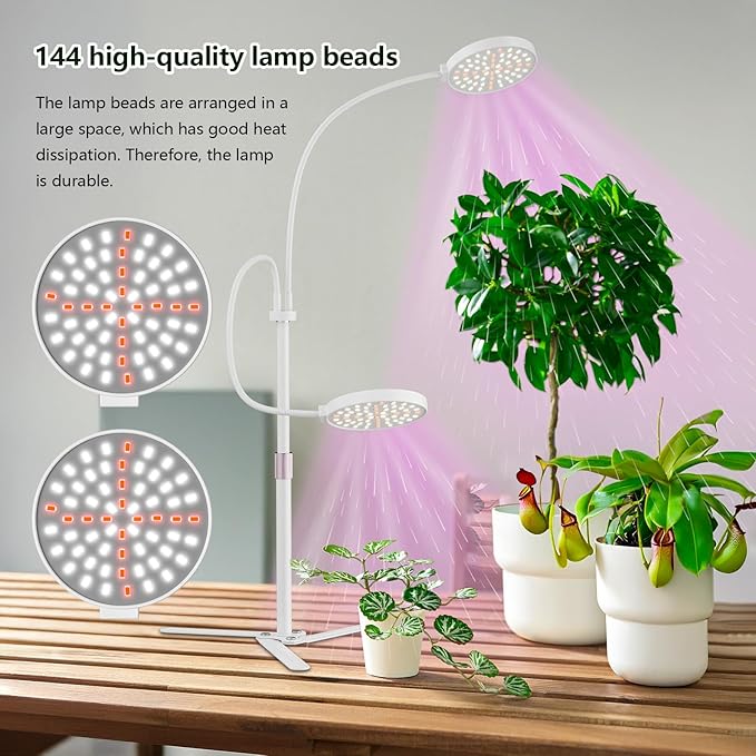 - Versatile 3-Leg Base: Unlike rigid disk-shaped bases, the adjustable 3-leg base offers far more flexibility. You can freely adjust the angle of each leg to complement your plant pot’s decorative arrangement. This design not only ensures the lamp stands securely but also allows the light to precisely cover the plants you want to illuminate.