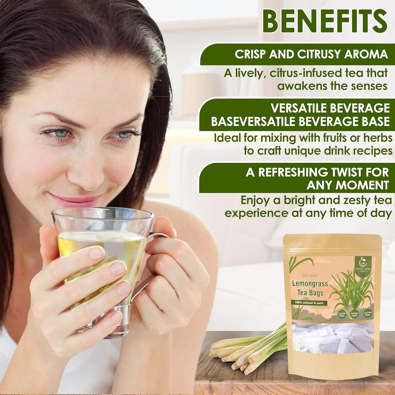 NHAT ANH FARM - Premium Lemongrass Tea Bags, 40 Lemongrass Tea Bags, 100% Natural Dried Lemongrass, Naturally Sweet Herbal Tea, Sugar-Free, Caffeine-Free, No Additives