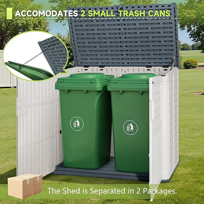 Devoko Resin Outdoor Storage Shed, 34 Cu Ft Outdoor Storage Cabinet Without Shelf, Waterproof, Double Locks, Resin Storage for Trash Can, Garden Tools, Pool Supplies (Beige)