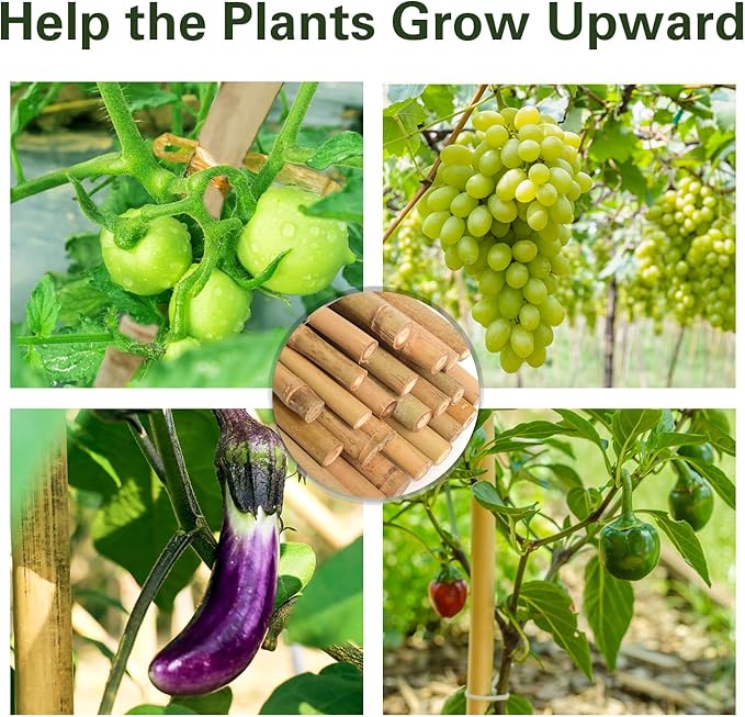 - Widely Operation: These plant stakes are suitable for seedling stands, tomato stakes, eggplant stakes, peppers, shrubs, pumpkin, cucumber, grapes and so on plants, making them grow well in the sun. Bamboo garden stakes are good choice for farm and garden.