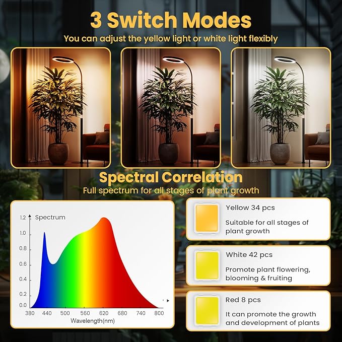 - Three cycle timing settings, this plant light will automatically turn on/off according to your desired schedule every day: 3/9/12H.