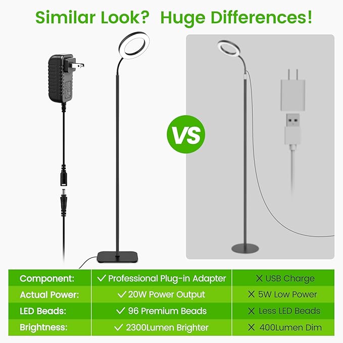 - 96 Premium LED Bulbs with Strong Power Output: Our upgraded tall grow lights are equipped with up to 96 high-quality bright LED lamp beads; unlike other USB plugs, we adopting a 12V adapter, providing stronger power output, more stable current output for a stronger light, accelerating photosynthesis, and effectively promoting the growth of your plants