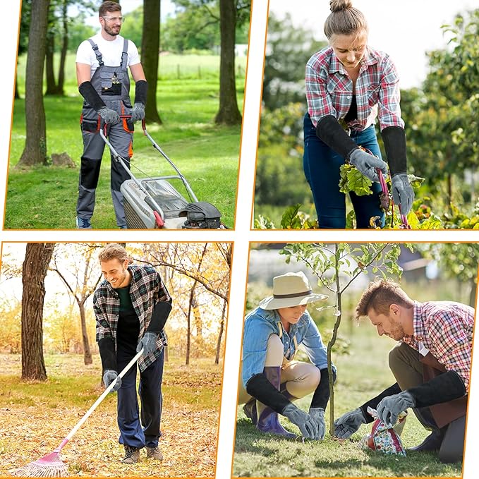 - Forearm Protection & Snug Fit: Feature cowhide leather long sleeves that extend up to forearms that protect them from cuts and scratches, keeping your hands and forearms safe and comfortable. Elastic wrist closure offers a snug and comfortable fit to keep the gloves securely on your hands. Perfect for tasks that require reaching into dense foliage or handling thorny plants