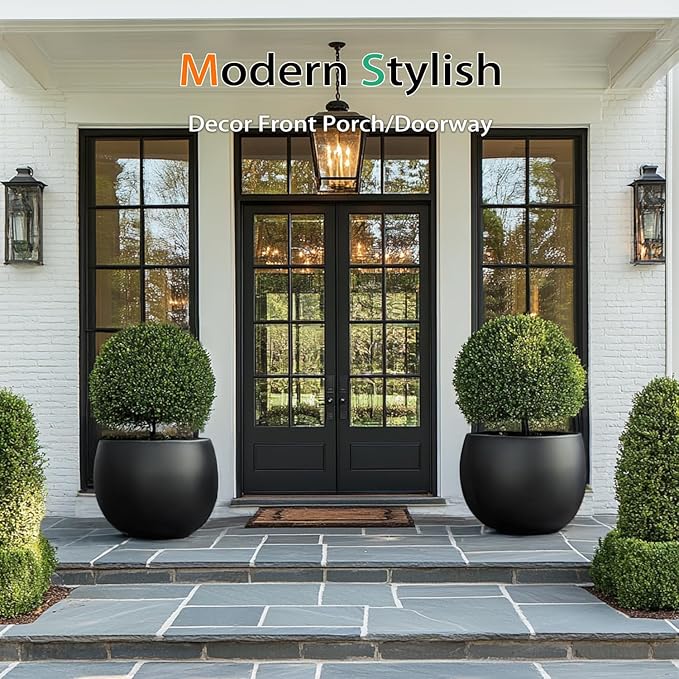 Ball Concrete Planter Outdoor Indoor, Large Tall Cement Plant Pots for Trees Flowers (Black, 18 inch)
