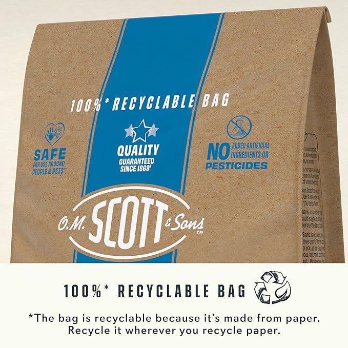 - O.M. Scott & Sons products are packaged in a recyclable paper bag - apply the product to your yard then toss the bag in your curbside recycling bin where available