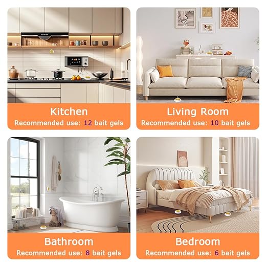 - Ideal for Kitchens, Bathrooms, and More: This gel bait is perfect for high-traffic areas like kitchens, living rooms, and bathrooms, where roaches are commonly found. It also works in hidden, hard-to-reach spots such as behind refrigerators, dishwashers, toilets, and storage cabinets. Whether in cracks, crevices, or under sinks, this bait targets roaches wherever they tend to hide and infest, ensuring comprehensive coverage throughout your home.