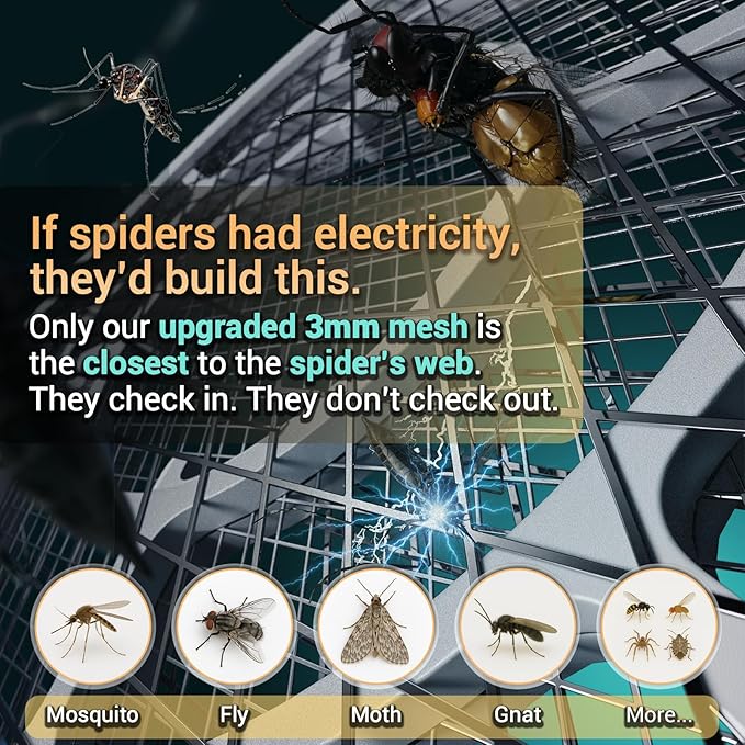- TOTAL INSECT COVERAGE & SERVICE – Obliterate bugs, flies, mosquitos, moths, gnats, spiders—indeed, all command flying insects—whether indoor or outdoor on the deck, garden, porch, backyard BBQ, picnic, or camping site. The 8.6 in × 16 in frame ships with one-year after-sales service for worry-free use.