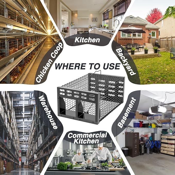 - 【Versatile Indoor & Outdoor Use】 Ideal for homes, kitchens, basements, garages, gardens, farms, and warehouses, this mousetrap delivers reliable performance in any environment—indoors or outdoors.