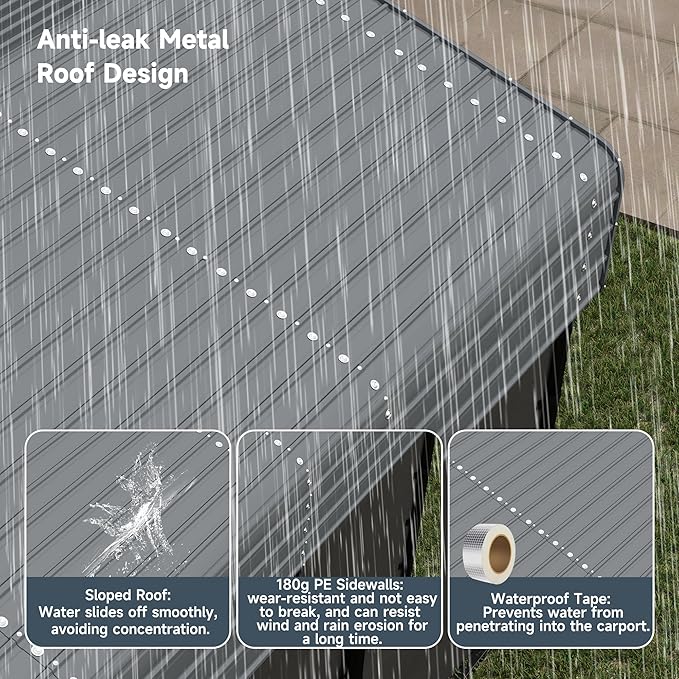 - Sturdy Structure: Constructed with a galvanized steel roof and a powder-coated steel frame, it provides excellent rust resistance and reliable protection against withstand extreme weather conditions such as strong winds, heavy rain, and snow.