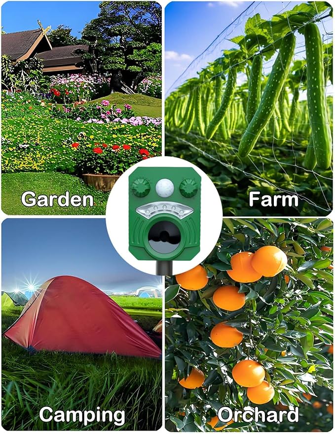 - 5 Repellent Modes:Features 5 frequency settings to effectively repel cats, dogs, deer, raccoons, skunks, squirrels, foxes,armadillo, rabbits, and more. The adjustable sensitivity and frequency allow you to customize the deterrence level for different animals without causing them harm