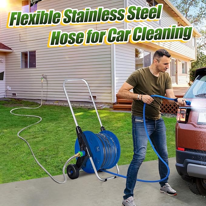 Female to Female Leader Hose for Hoses Reel, 15ft Metal Leakproof Short Garden Hose Connector, Heavy Duty 304 Stainless Steel Flexible Water Pipe for Outdoor Garden Watering Car Pet Cleaning
