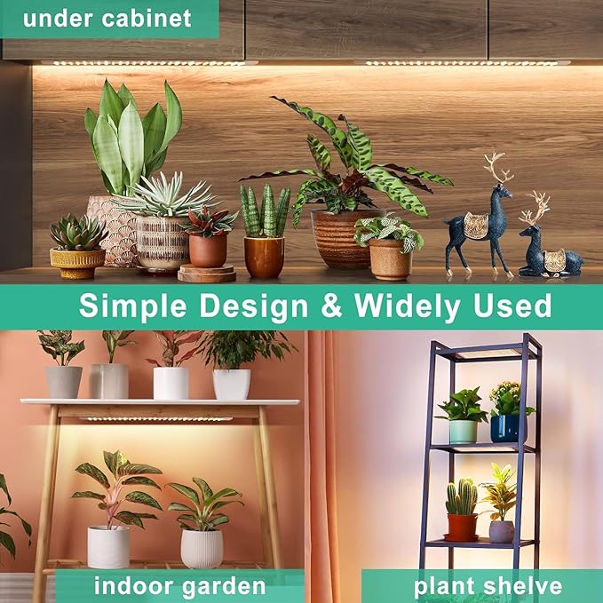 - Sleek Design & Easy Installation: These slim plant light panels include double-sided tape and twist ties for effortless setup. The minimalist design complements a variety of fixtures and surfaces, making them perfect for shelves, bookshelves, cabinets, glass greenhouses, and more. The discreet installation blends seamlessly with home decor, ideal for plant enthusiasts!