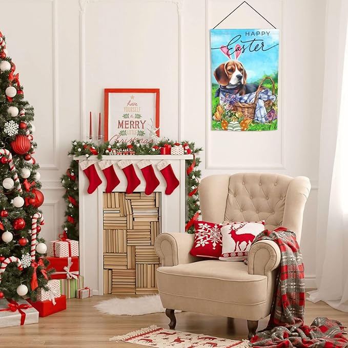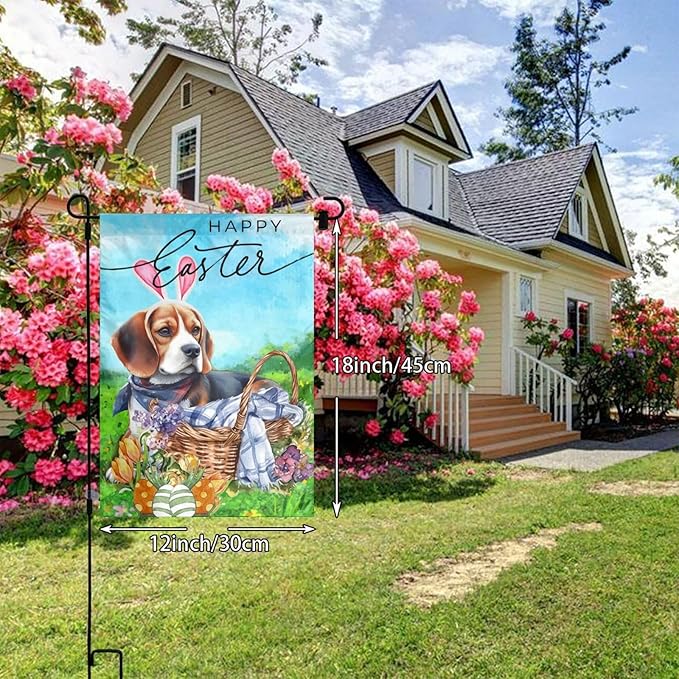 Beagle Dog Flower Happy Easter Bunny Cute Egg Garden Flag Welcome Party Outdoor Outside Decorations Picks Home House Garden Yard Decor 12x18 Inch