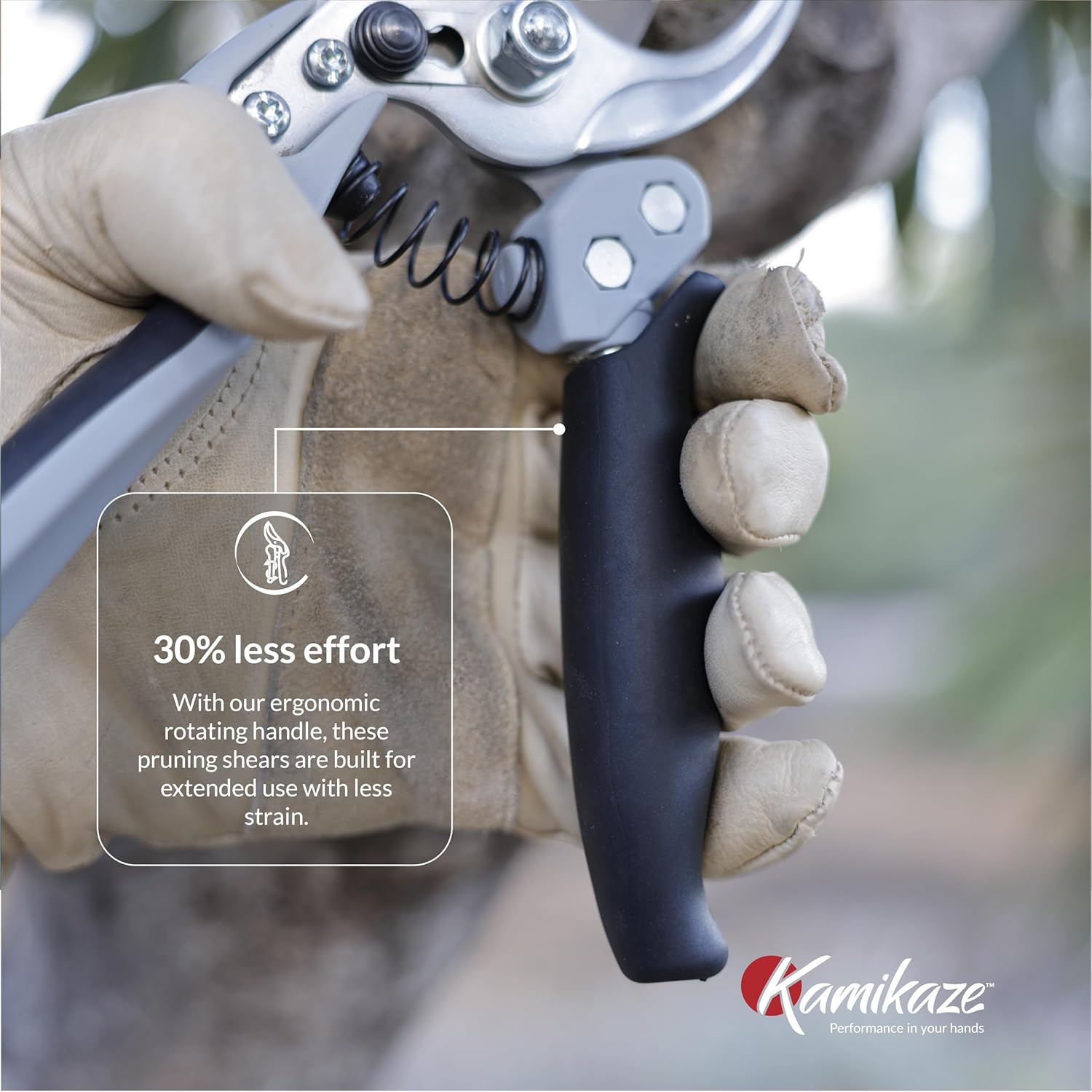 - ERGONOMIC ROTATING HANDLE FOR COMFORTABLE CUTTING β The KAMIKAZE pruning shears feature an innovative rotating handle that reduces hand strain and promotes a more natural cutting motion. Ideal for those with arthritis or hand fatigue, the rotating handle minimizes repetitive hand movement, making it easier to tackle even the toughest pruning tasks without discomfort. Enjoy a more comfortable and efficient gardening experience, perfect for long hours of use.