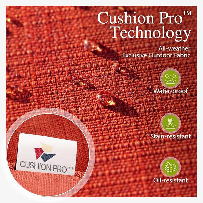 - Weather-Resistant Cushion Pro Fabric : Sophia & William patio sofa cushions are crafted with exclusive Cushion Pro outdoor fabric, designed specifically for outdoor use. This fabric offers superior water resistance, oil-repellent, and stain-resistant properties, making it easy to clean with just a sponge and cleaning spray. The velcro design ensures the cushions stay securely in place, preventing slipping or sliding for a comfortable, hassle-free seating experience.