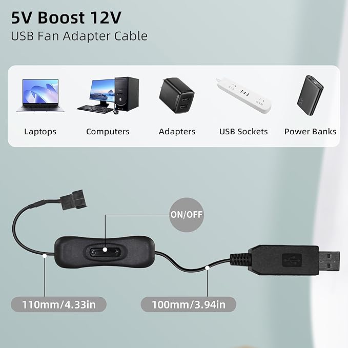 - 【5V Boost 12V Adapter】This 5V USB connector is capable of stabilizing the power output from 5V to 12V, easily matching with laptops, mobile power and various USB adapters.(no PWM function)