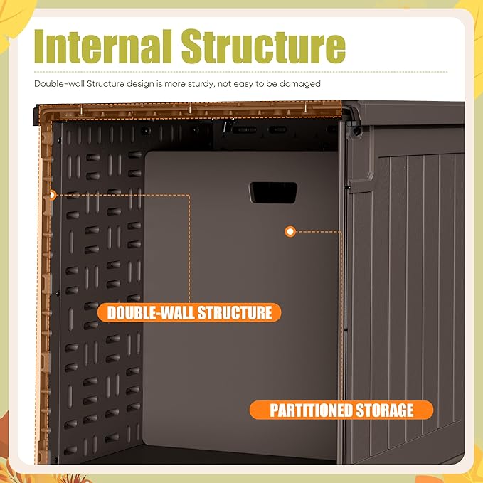 Devoko 240 Gallon Double-Wall Deck Box with Divider, Side Handles, Resin Outdoor Large Storage Box Waterproof and Lockable for Patio Furniture, Garden, Pool (Brown)