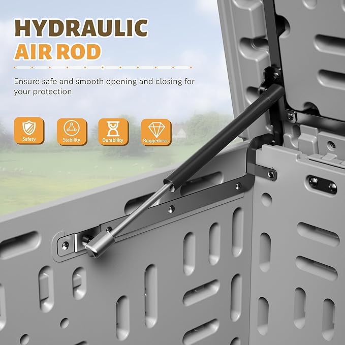 - [Safety Design]We choose hydraulic rods to connect the cover and the box, which buffers at the time of opening and closing, greatly ensuring the safety. In addition, the design of locker is a good helper for your safety of property