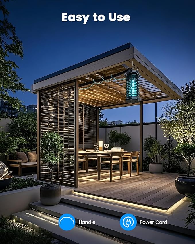 - 【Weatherproof & Multi-Site Use】Designed to withstand adverse weather conditions, this mosquito lamp ensures durability. Featuring a top handle for easy hanging, it can be used in various settings, including yards, balconies, corridors, gardens, pergolas, patios, garages, farms, offices, swimming pools, and more