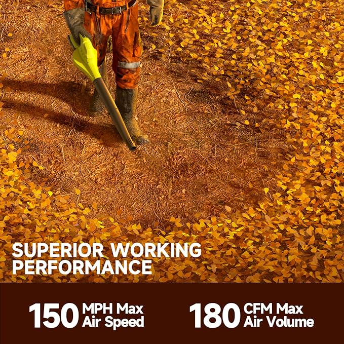 - POWERFUL EFFICIENT CLEANER: Pulituo cordless leaf blower makes yard work effortless with no need for gas or cords. Blower's 17,000 RPM copper motor delivers stronger, faster performance. Compact and lightweight design features advanced turbo tech for max airflow, reaching 150 MPH blowing speed and 180 CFM air volume.