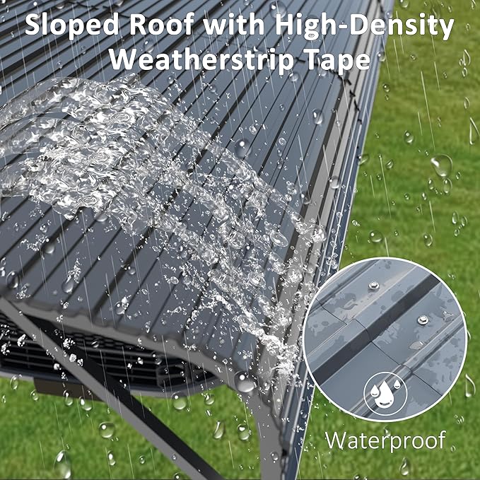 - Upgraded Metal Roof: The carport roof is made of thicken steel, which is not only rust proof but also long lasting. The upgraded sloping carport canopy helps to drain water quickly. In addition, the metal carport roof has high density weatherstrip tape to prevent water leakage on rainy days. The 20’ x 20’ carport can stand the test of time. Compared with the garage, the metal carport is relatively cost effective, quick, and simple to build, and can ensure the safety of your car