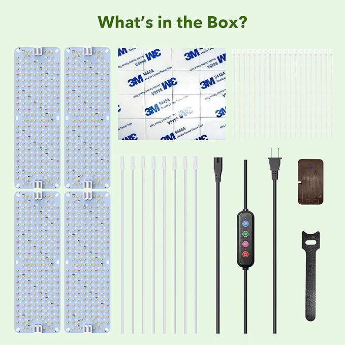 - [Easy Installation with Multiple Options]-Designed for effortless assembly, this plant grow lights includes both zip ties and 3M adhesive tape for flexible mounting options. Whether attaching to under cabinet, shelves, walls, or other surfaces, the setup is quick and secure, providing the best light coverage for your indoor plants.