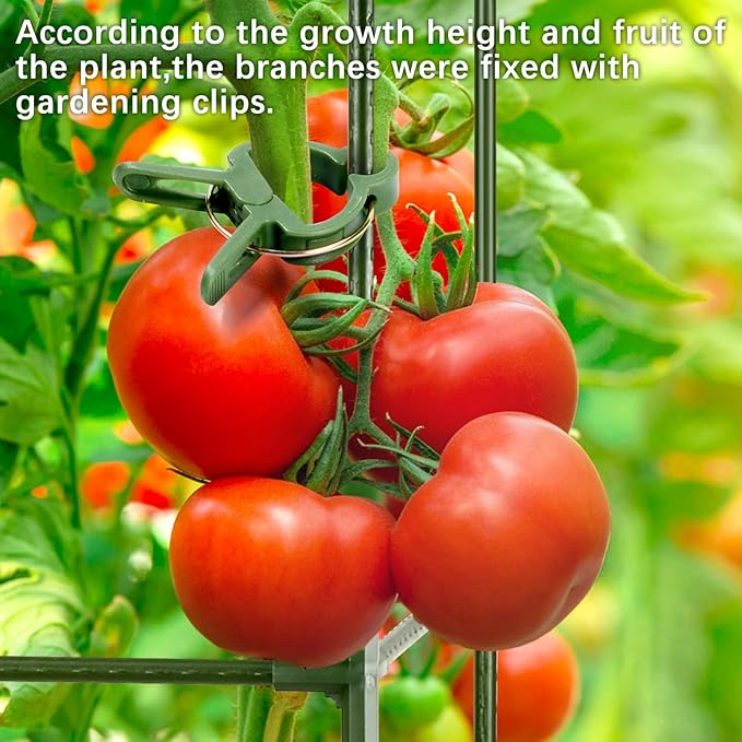 - [Package content] 20 plant rods, 4 ground piles, 4 three-way connectors, 8 four-way connectors, 10 garden clips. It can be assembled into a 48.8in tomato holder.
