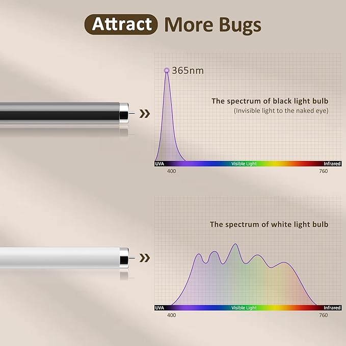 - Dual Spectrum Trapping: Our insect killer combines regular UV and black UV bulbs, expanding the light range to attract more flying insects. We also include two extra bulbs, ensuring continuous and worry - free operation over an extended period