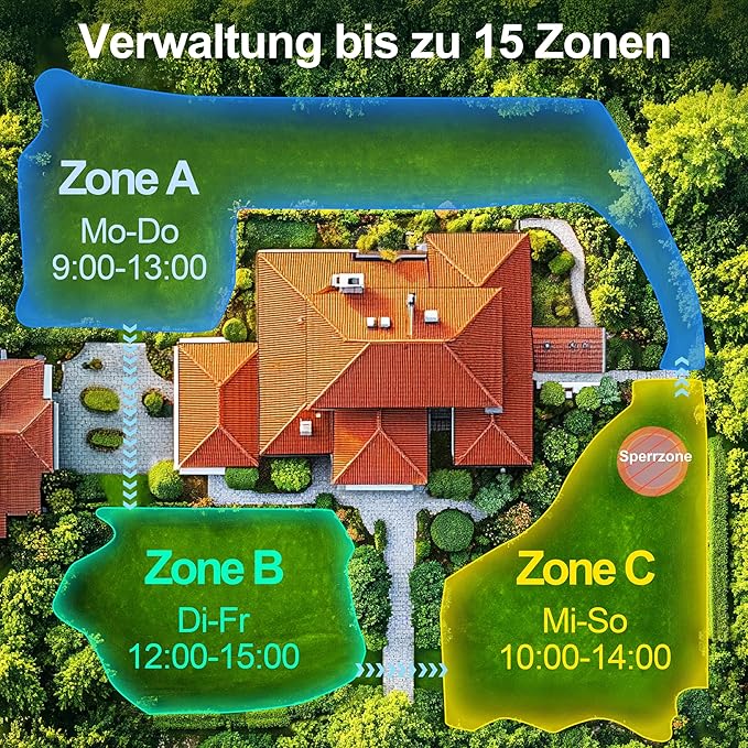 - Smart App Control & Multi-Zone Management: All in One App. Edit mowing maps, set schedules for up to 12 zones, adjust cutting heights, and monitor progress remotely from anywhere using the U Mower app.