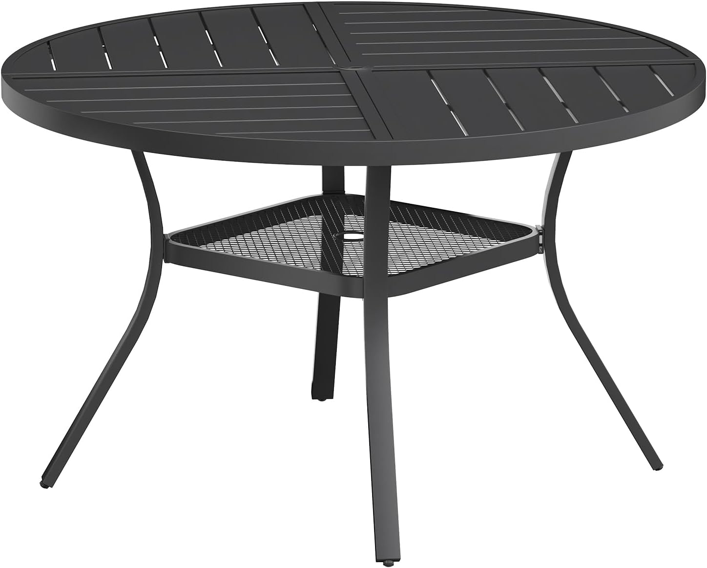 VICLLAX Round Patio Table with Adjustable Umbrella Hole for 4, All Weather Metal Outdoor Dining Table for Lawn Garden, 40.6" Outdoor Coffee Table, Black Tabletop