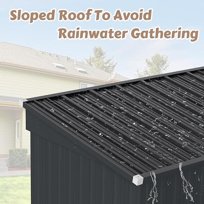 - UPGRADED STRUCTURE FOR SIMPLER ASSEMBLY-Assembling a metal storage shed is always a pain for tons of pieces and complicated steps, and we absolutely recognize it! That's why we want to introduce you this shed with upgraded construction for less pieces, clearer steps and even more sturdier, which allows you to quickly enjoy the convenience and happiness it brings.
